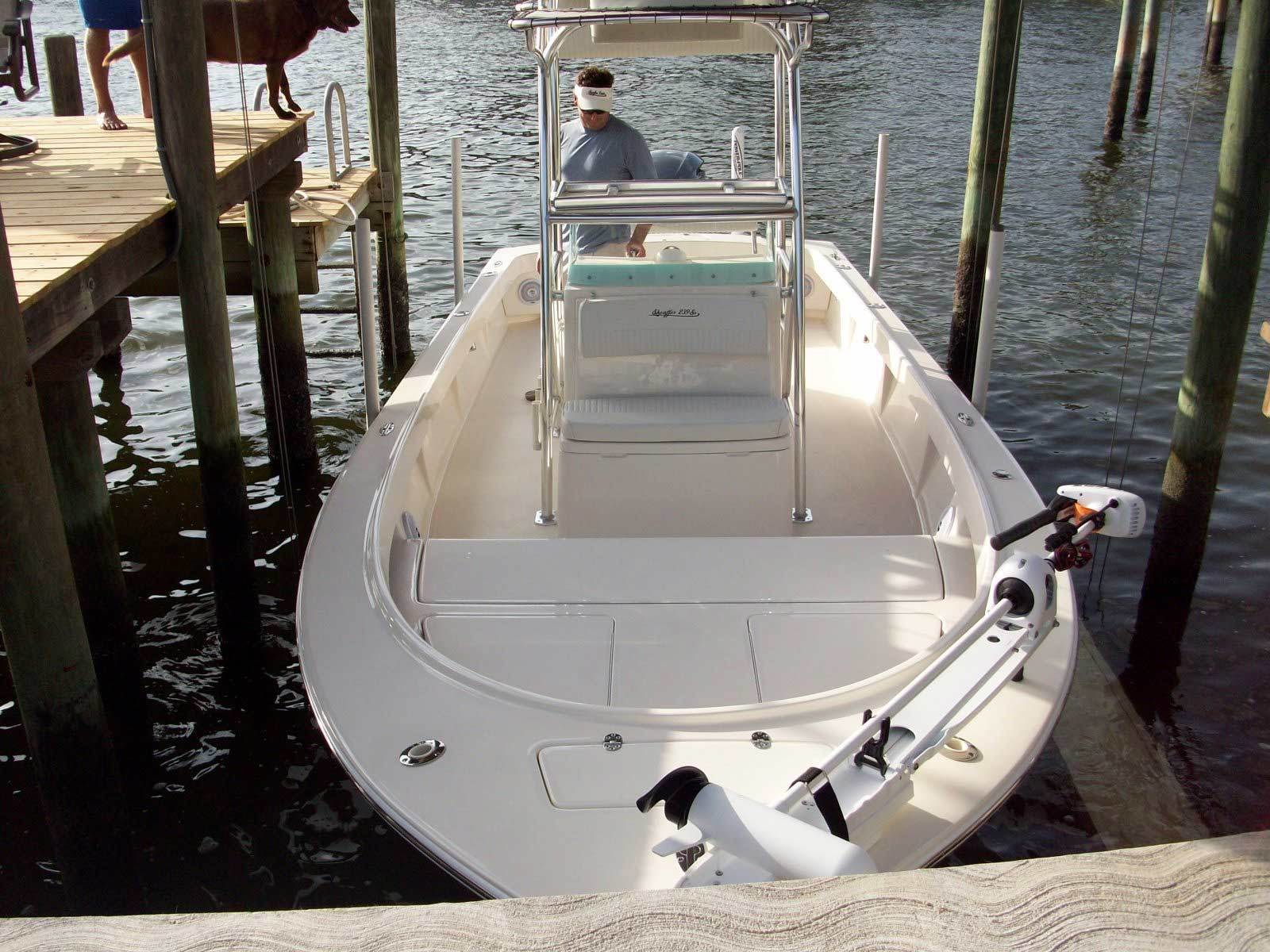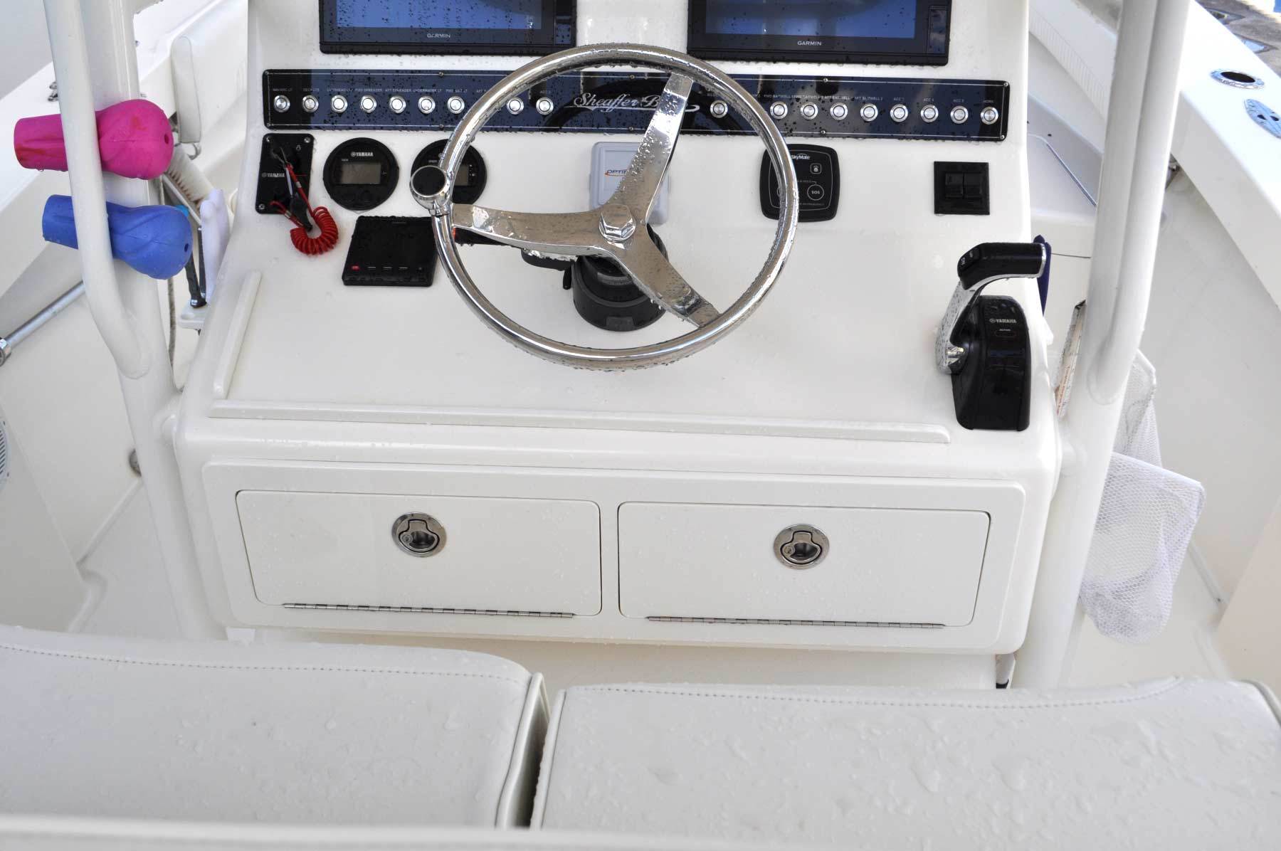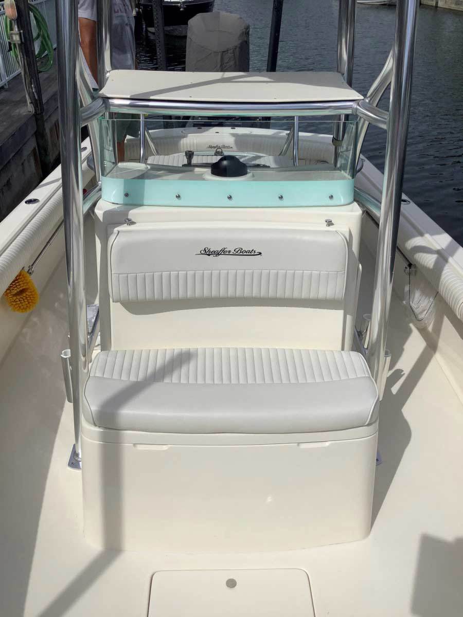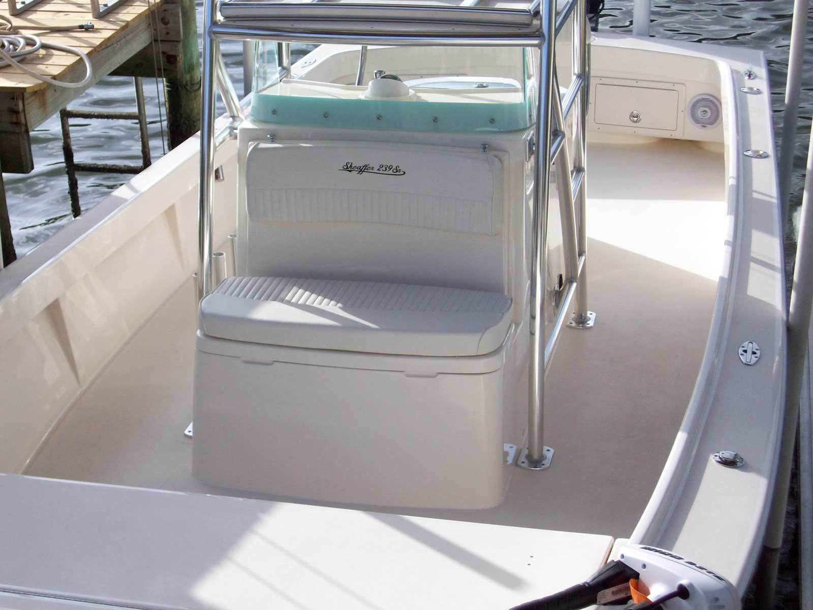 Whether fishing the flats in the brilliant early morning, running 40 miles to your favorite offshore spot, or cruising to an island for some family fun, the Sheaffer S240 does it all – and more. The modified V eats up stiff chop and impressively handles turns, yet provides a shallow draft. The S240 not only gets you to your destination, it gets you there with confidence; it’s elegant and poised on the outside, but safe and sturdy throughout. The S240 has an optional Half Tower, Three Quarter Tower, or Full Tower with dual controls. And, between the enormous fish box, the standard 70 gallons of livewell, the optional bow mount trolling motor, the S240 has superb stability and a strong, spacious fishing platform. The 100-gallon fuel tank and exceptional performance gives you the freedom to make long runs, or just run the boat for the whole week without filling up. With superior ride capabilities, fit and finish, as well as unparalleled performance, the Sheaffer S240 is the perfect fit for the hardcore fisherman, weekend warrior and everybody in between.